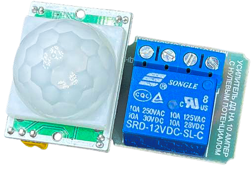 Регулятор освещения имеет встроенный датчик движения и света с нулевым потенциалом (сухой контакт). Днем, при высоком уровне освещенности прибор отключен. При наступлении сумерек происходит активация датчика движения. Возможно использование в качестве простейшей сигнализации совместно с сиреной.