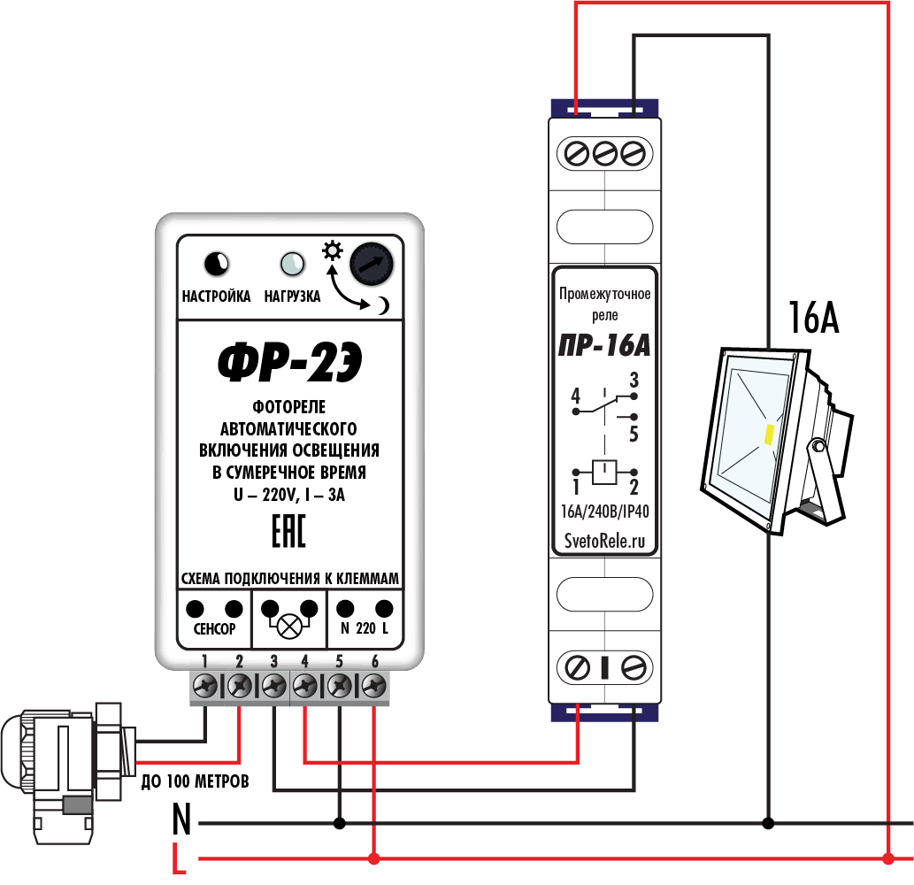 Фотореле ФР-2Э для управления магнитным пускателем с катушкой на 220 или 380 вольт