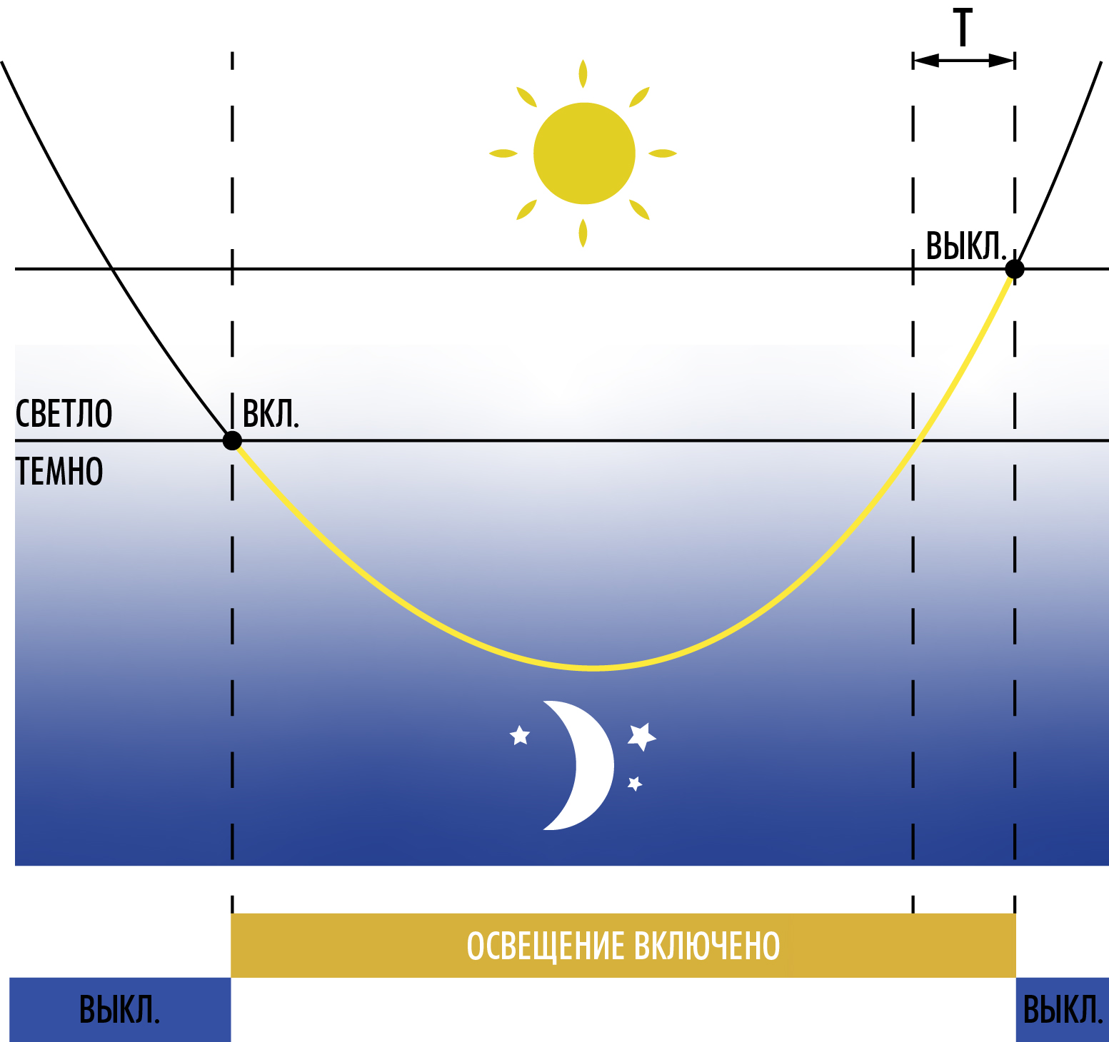 5. Диапазон срабатывания - от захода солнца до окончания сумерек.