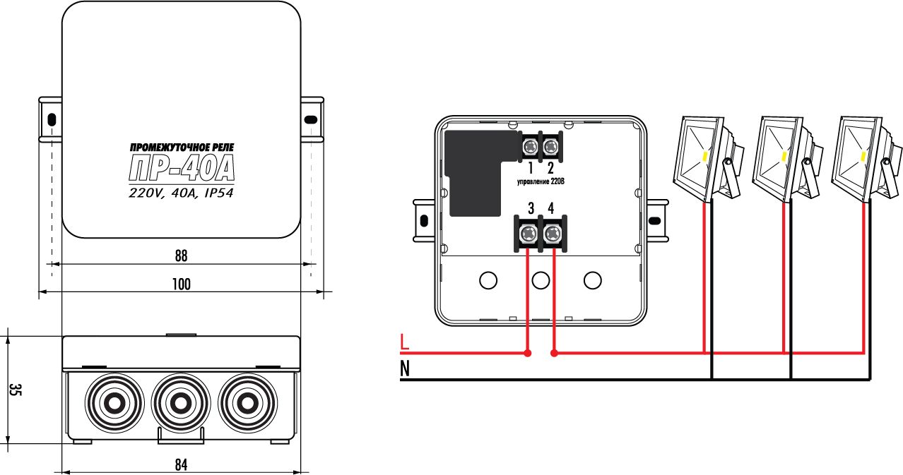 Подключите к клеммам 1 и 2 сеть 220 вольт через кнопку или выключатель, нагрузку через клеммы 3 и 4 (сухой контакт) на фазу и ноль. 100.000 включений!