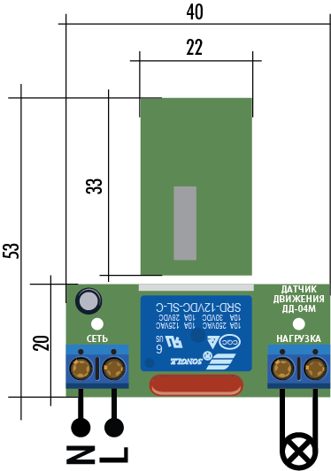Регулятор освещения имеет встроенный датчик движения. При любом движении происходит активация датчика. За дополнительную плату установим датчика света.