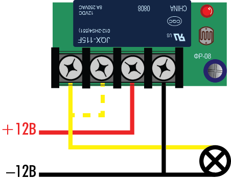 Общий минус! Коммутирует плюс! Без регулировки, включается примерно в 50 люкс, если сенсор хорошо видит свет! Для раннего включения - затемните сенсор!