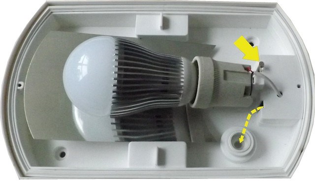 Задание порога освещенности производится поворотом регулятора. По часовой стрелке - порог выше, лампа включится раньше, когда еще не совсем темно. Против часовой стрелки - порог ниже, лампа включится позднее, в более темное время.
