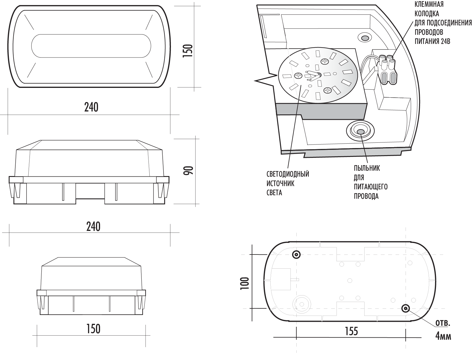 7. Габаритные размеры – 150 х 90 х 240 мм.