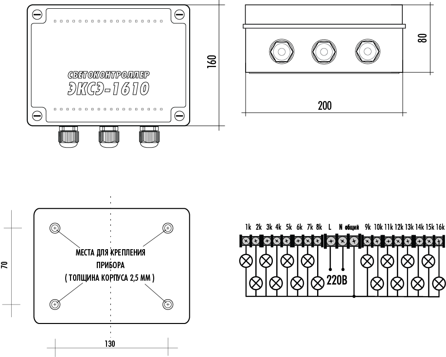 Контроллер выпускается в герметичном корпусе с присоединением проводов питания и коммутируемых электрических цепей через гермовводы.