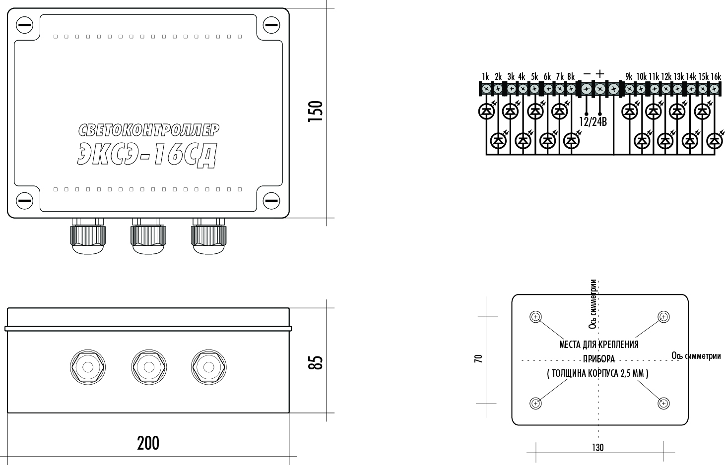Контроллер выпускается в герметичном корпусе с присоединением проводов питания и коммутируемых электрических цепей через гермовводы.