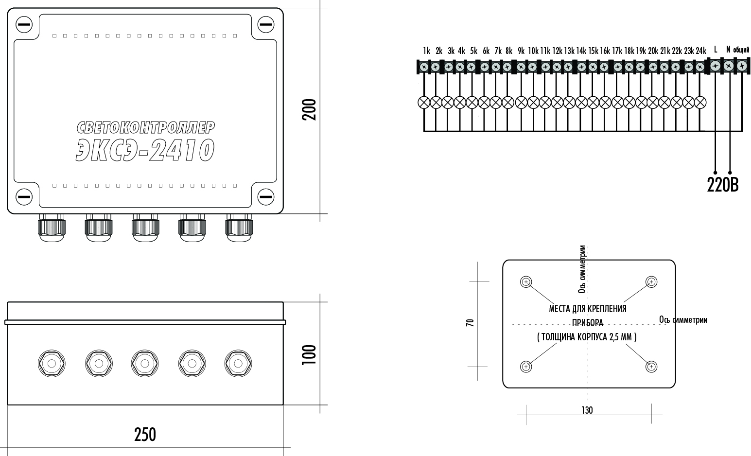 Контроллер выпускается в герметичном корпусе с присоединением проводов питания и коммутируемых электрических цепей через гермовводы.