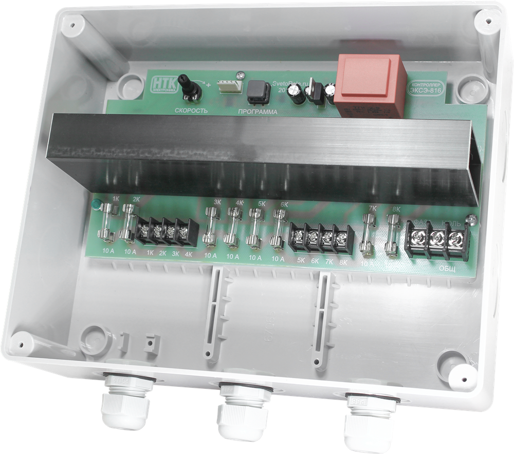 Использование в качестве нагрузки понижающих трансформаторов недопустимо! (При заказе прибора укажите что вам необходимо управлять понижающими трансформаторами). При подключение неоновых трансформаторов, следует учитывать рабочие и пусковые токи, указанные на маркировке изделий, суммарное значение которых не должно превышать 5 ампер в канал. Категорически не допускается установка перемычки вместо предохранителя. Зажим клеммных колодок производить до максимума для исключения дребезга прижимаемых контактов.