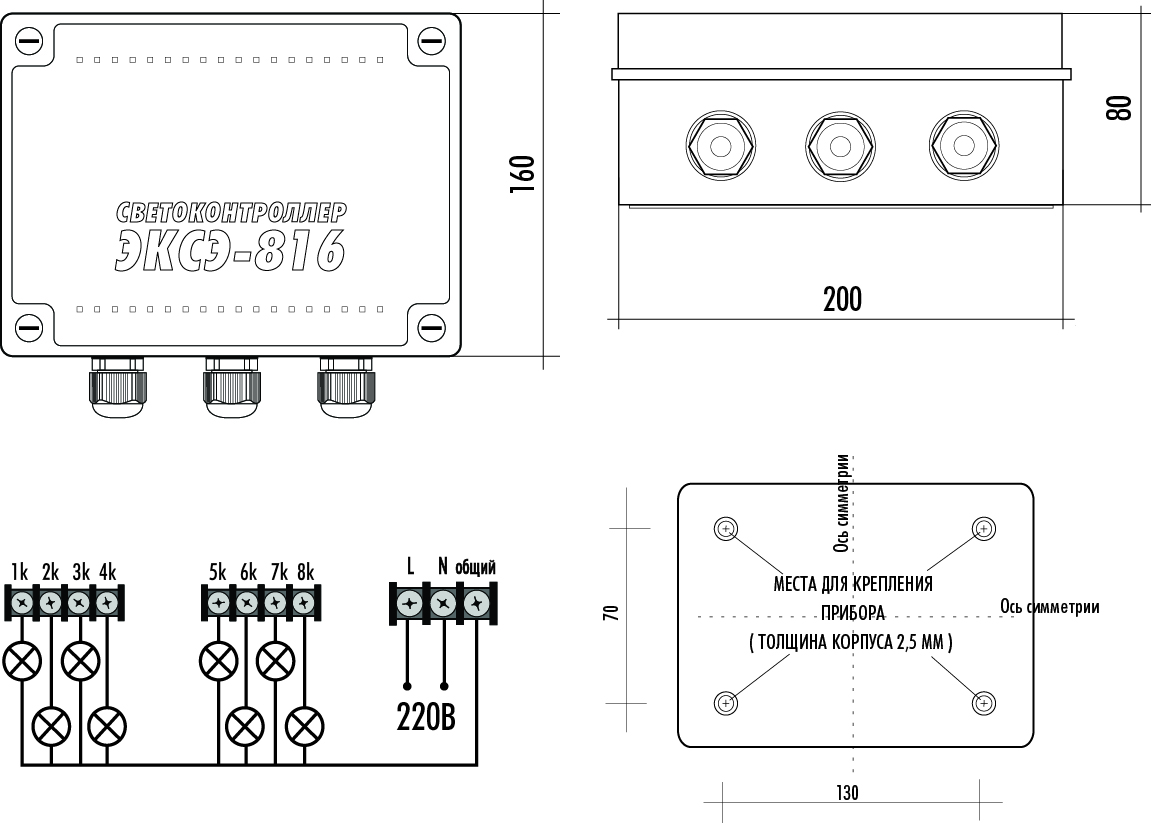 Контроллер выпускается в герметичном корпусе с присоединением проводов питания и коммутируемых электрических цепей через гермовводы.