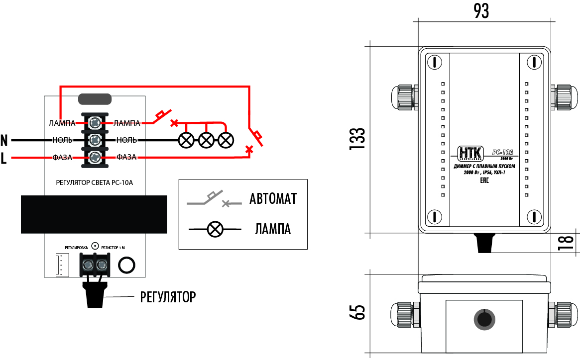 Регулятор выпускается в герметичном корпусе с присоединением проводов питания и активной или резистивной нагрузки.