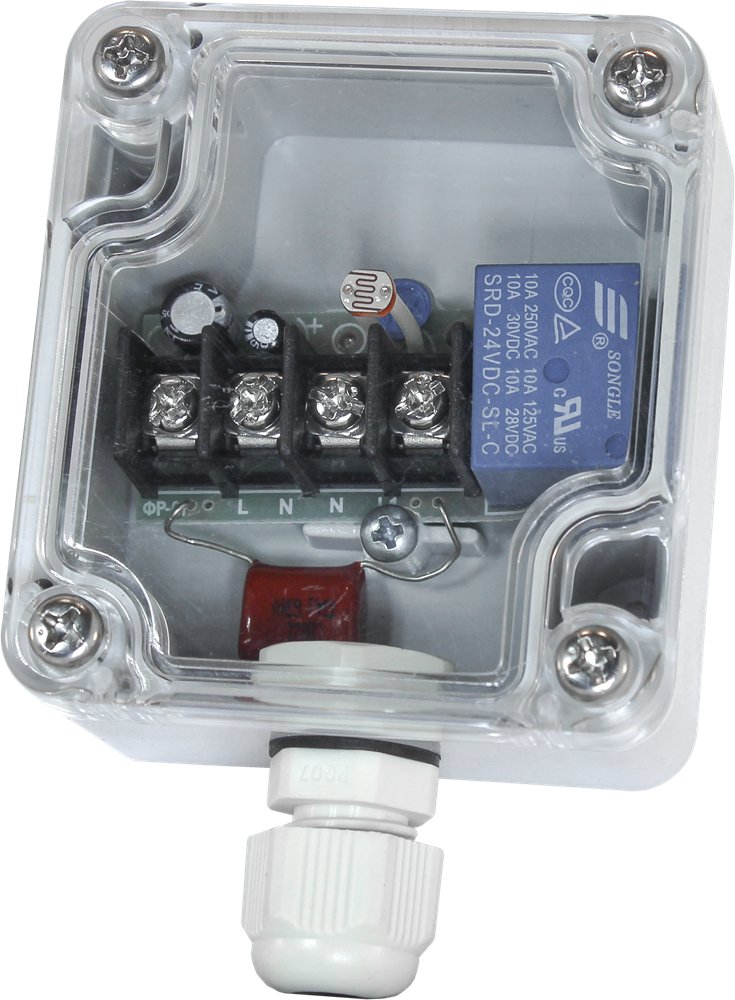 Светочувствительное реле выпускается в герметичном корпусе с присоединением проводов питания и коммутируемых электрических цепей через гермоввод.