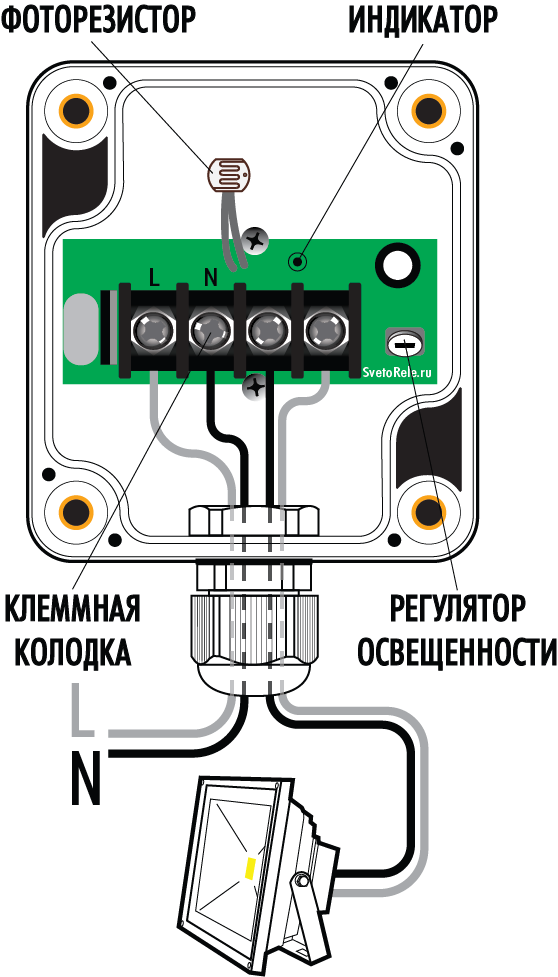 Светочувствительное реле выпускается в герметичном корпусе с присоединением проводов питания и коммутируемых электрических цепей через гермоввод.